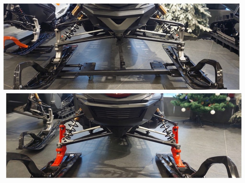 Вверху на фото самые длинные поперечные рычаги и самая большая база лыж у X Terrain. Внизу горный SHREDDER DS