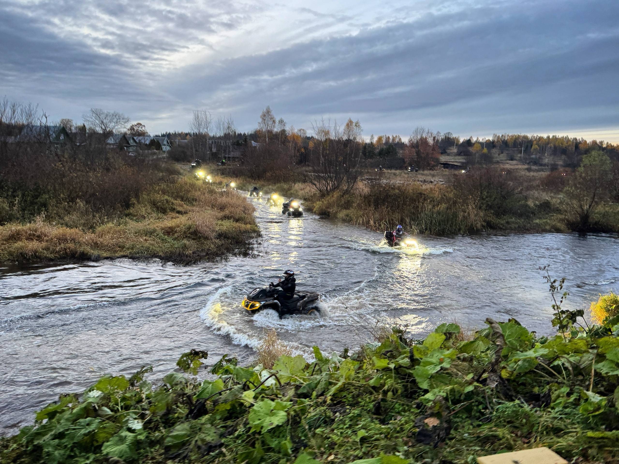 По ходу маршрута мы заехали на экскурсию в архитектурно-этнографический музей «Василёво», где одной из главных экспозиций является большой валунный мост, прозванный в народе «Чёртовым», а потом отправились на родину архитектора Львова – усадьбу Никольское-Черенчицы, где увидели грот-пирамиду, валунную кузнецу и колокольню-маяк. Наш путь периодически пролегал вдоль красивых берегов реки Осуга и Таложенки. А реку Осуга три раза пересекли в брод. Очень живописная местность, вкуснейший клубный обед и согревающий кофе-брейк в ночи, отличная команда и душевная атмосфера! Настоящий кайф от таких выходных!
