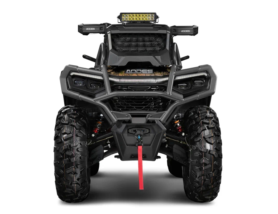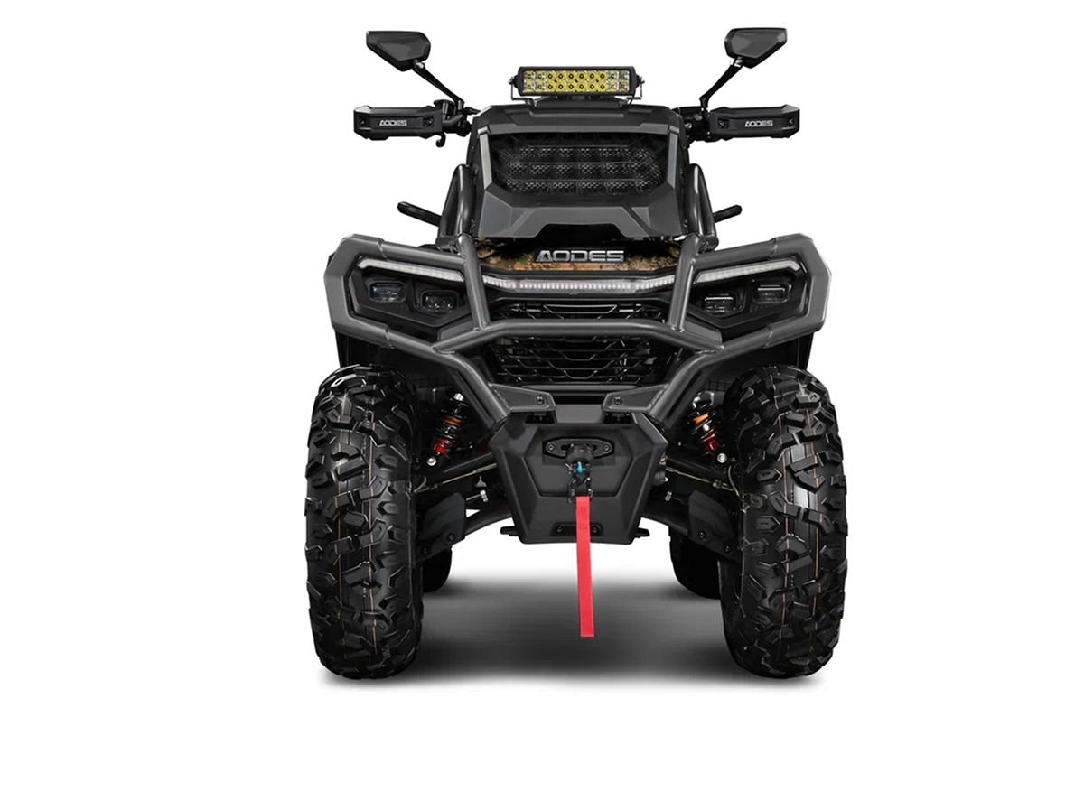 Подвеска на амортизаторах YIT ST-4 сглаживает кочки и ямы, а электроусилитель руля помогает уверенно рулить вне зависимости от скорости и рельефа. Дополнительные LED-фары пригодятся, когда нужно пробираться ночью, а кнопка полного отключения света — для скрытного перемещения, что будет полезно на охоте или при патрулировании угодий.